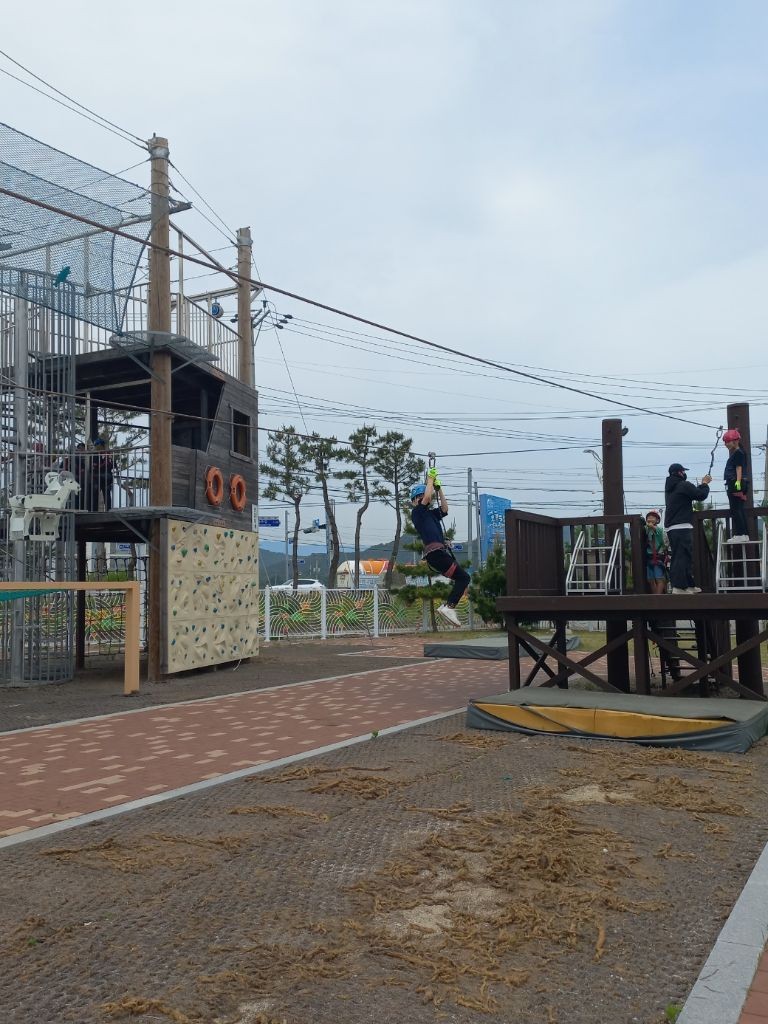 "우와아아악!" 소리가 절로 나오는 짜릿한 집라인! 바다 바람을 온몸으로 느끼며 하늘을 날아다니는 기분이에요. 인스타 스토리에 올리면 친구들이 "어디야?!"라고 댓글 폭탄 확실! 📸✈